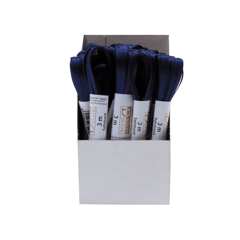 High-quality double satin ribbon, 3 meters in length, 3 mm in width, Navy Blue color, Goldina brand. Perfect for elegant decorations and crafts.