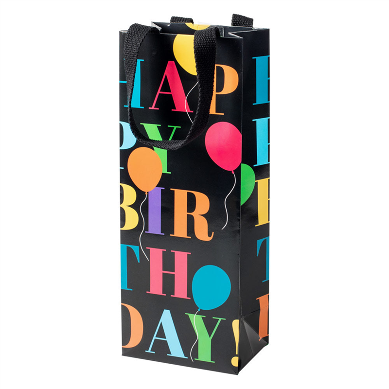 Caspari's "Birthday Surprise" Bottle Gift Bag 13x9x33cm is an elegant and colorful packaging, perfect for presenting a bottle of wine or champagne in a festive manner. Made with high-quality materials, the bag features a lively and cheerful design, ideal for celebrating birthdays and special occasions. The generous dimensions allow it to comfortably fit most standard bottles, while the sturdy handles ensure safe transport. Add a touch of style to your gifts with this refined gift bag from Caspari.