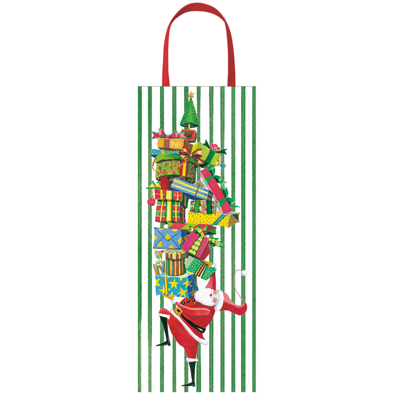Gift Bag Bottle 13x9x33cm Santa With Gift | . | Caspari