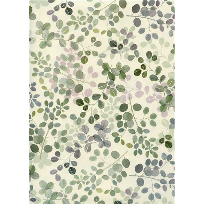 High-quality gift wrap with an elegant design featuring eucalyptus leaves, measuring 70x100 cm, produced by Tassotti. Ideal for wrapping gifts with a touch of nature and sophistication.