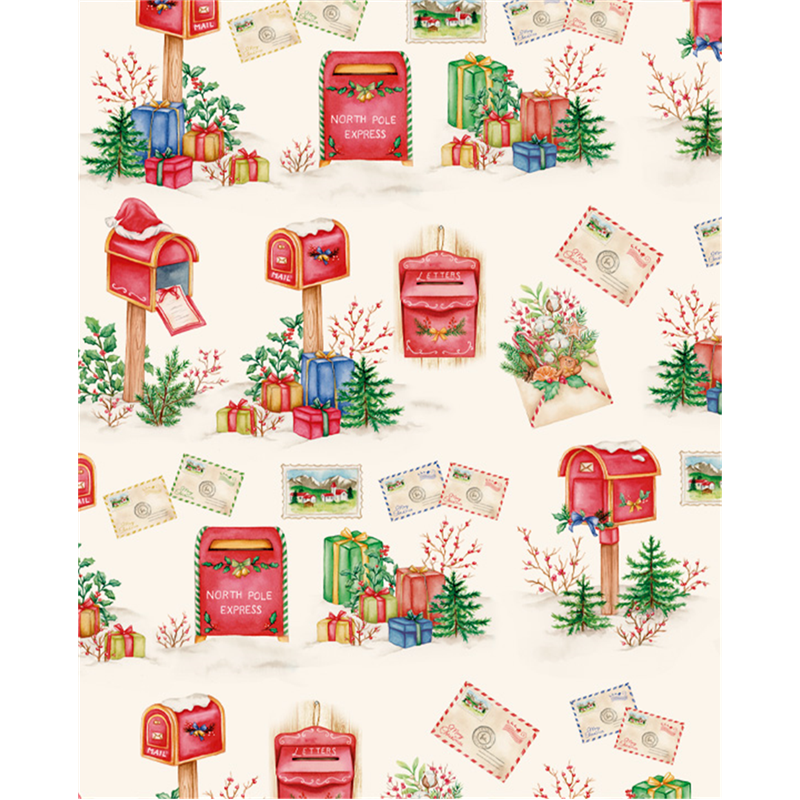 CHRISTMAS GIFT WRAP WRAPPING PAPER MEASURING 70X100 CM, DECORATED WITH AN ELEGANT PATTERN INSPIRED BY TRADITIONAL LETTERBOXES, IDEAL FOR WRAPPING YOUR GIFTS WITH A TOUCH OF CLASS AND ORIGINALITY DURING THE CHRISTMAS HOLIDAYS.