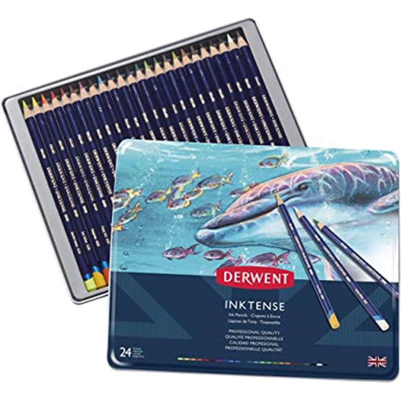 Inktense 24 Colored Pencils Metal Tin Set | Derwent