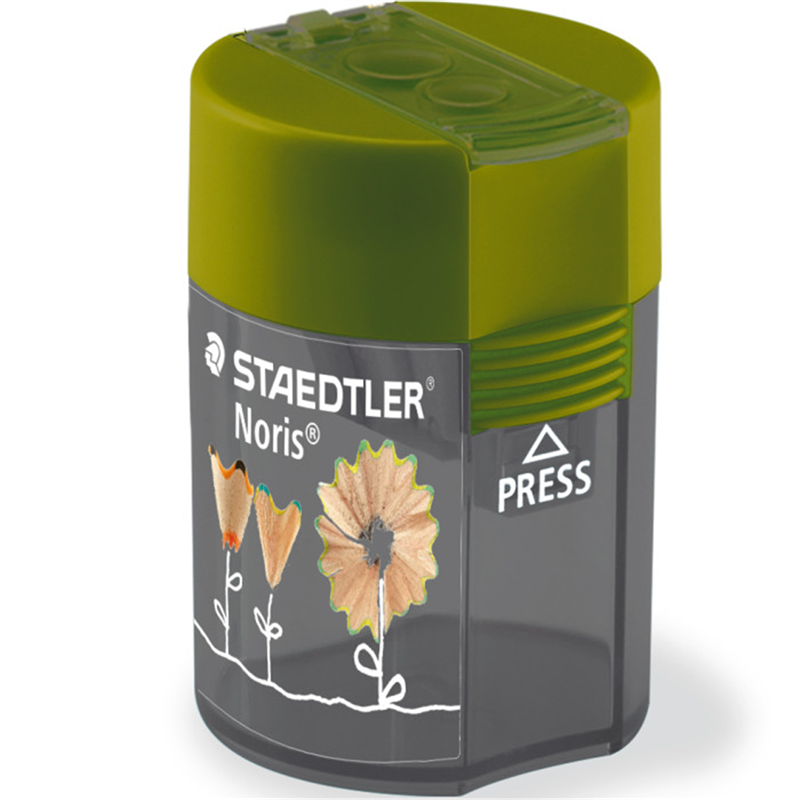 2-hole “flower” pencil sharpener with shavings container for standard pencils with max. ø 8.2 mm barrel and for graphite and coloured pencils with jumbo barrel max. ø 10.2 mm. flower design.