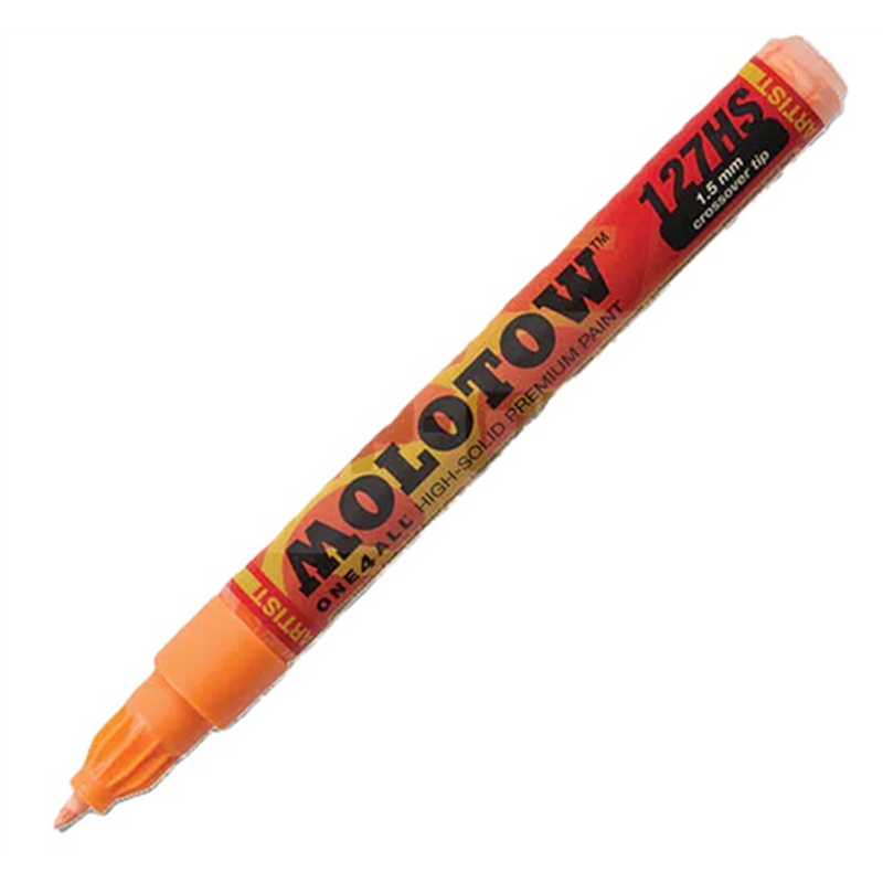 WATER-BASED ACRYLIC LINE, IDEAL FOR WORKS ON PAPER, PLASTIC, CANVAS, ETC. HAS A MATTE FINISH AND OPAQUE, IDEAL TO MAKE CUSTOMIZATION AND COMPLEX CHROMATIC COMPOSITIONS. THANKS To VARIOUS SIZES And MANY ONE4ALL LINE TONE Is Very VERSATILE. 127HS CROSSOVER VERSION FROM 1.5 MM. INTERCHANGEABLE ULTRA RESISTANT AND CAN BE USED ON ROUGH SURFACES AND THANKS TO ITS PARTICULAR SHAPE WRITES FROM EVERY ANGLE. PUMP VALVE PROVIDES A CONTROLLED FLOW OF PAINT.
