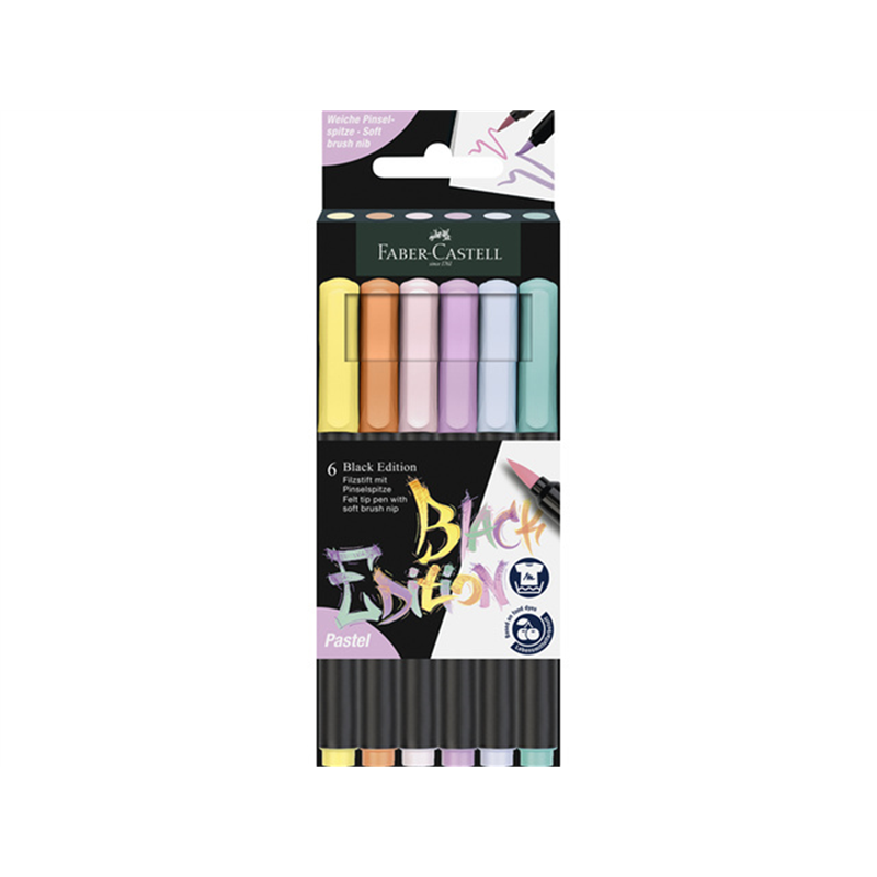 Set Of 6 Pastel Brush Tip Markers Black Edition | | Faber-Castell