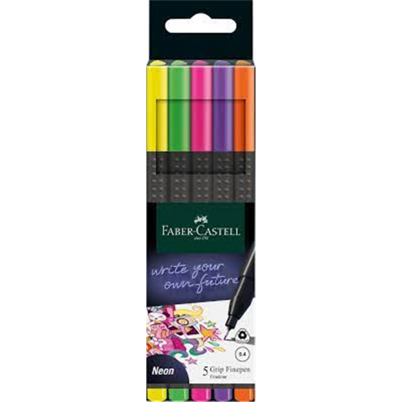 Case With 5 Neon Finepen Grips In Cardboard | | Faber-Castell