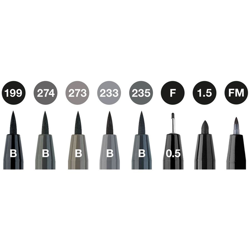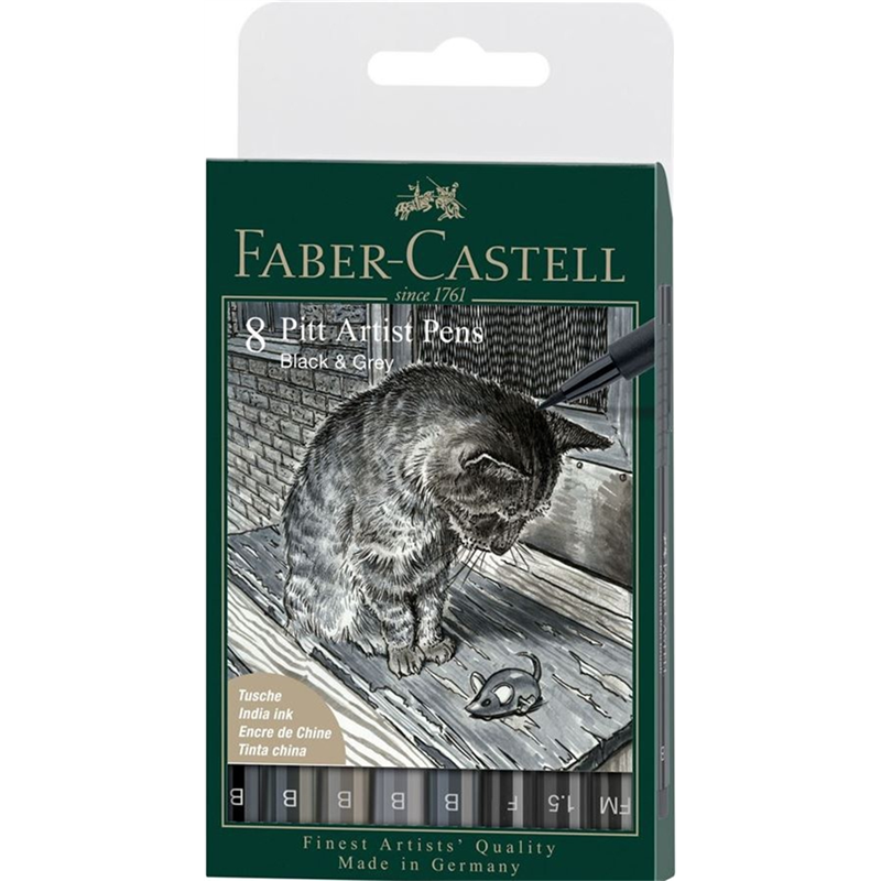 Set Of 8 Pitt Artist Pens Black Grey | | Faber-Castell