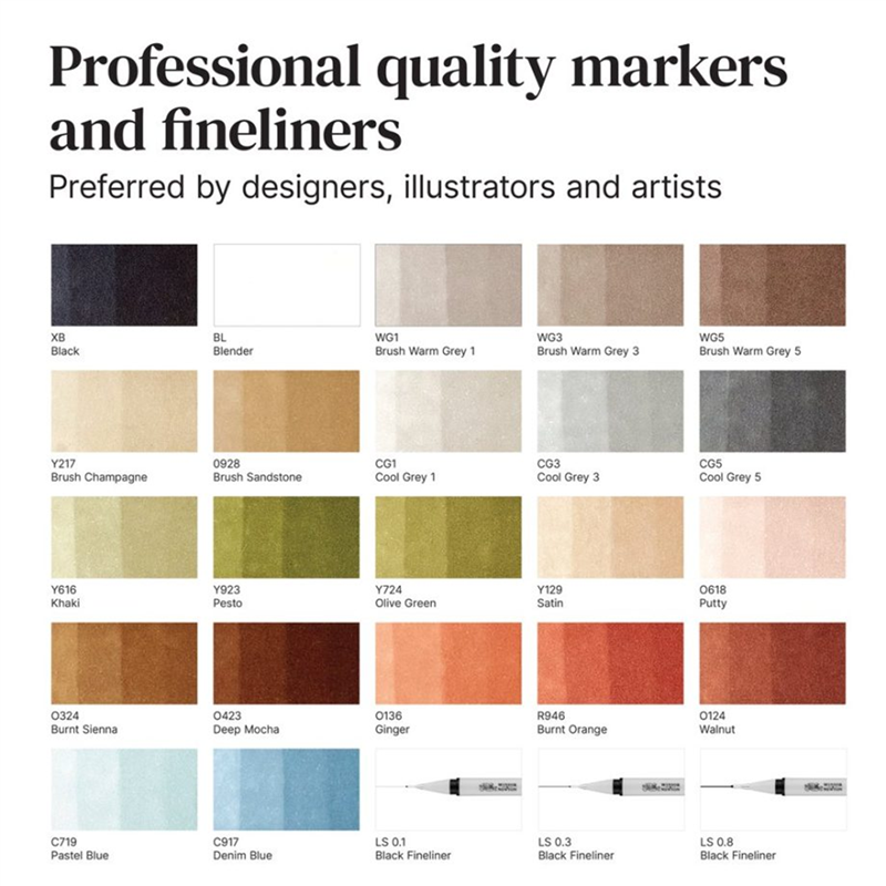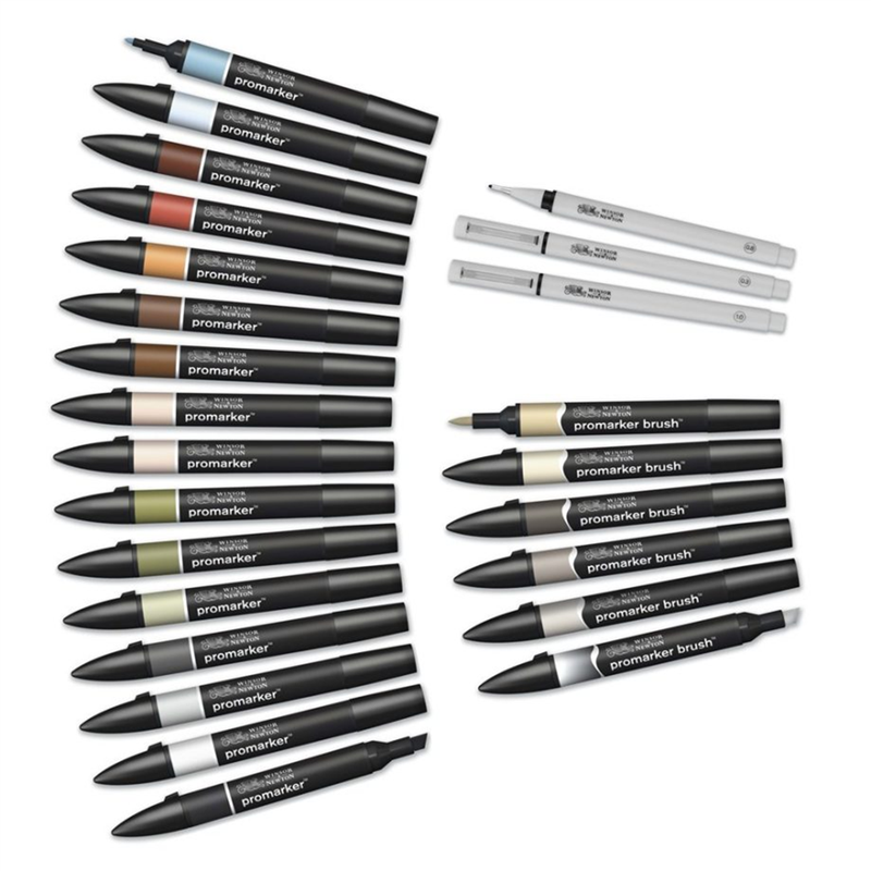 trendy proposal, ideal for students and interior design enthusiasts. a must-have for back to school and end of year gifts! each pencil case, made of recycled materials, contains: ? 16 x promarker ? 6 x promarker brush ? 3 x fineliner