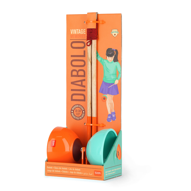 slide your diabolo by guiding it with wooden sticks or make it jump with the right wrist play: the fun is in your hands.