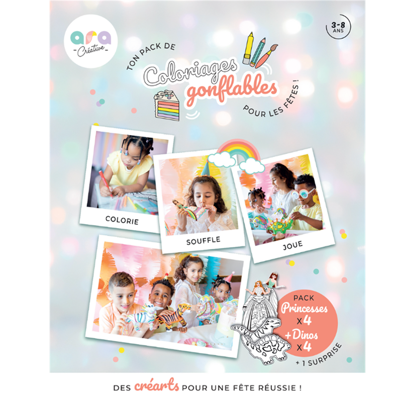 Birthday Packs Inflate And Color Crearts Princesses And Dinosaurs | Vertecchi Selection. | Selezione Vertecchi