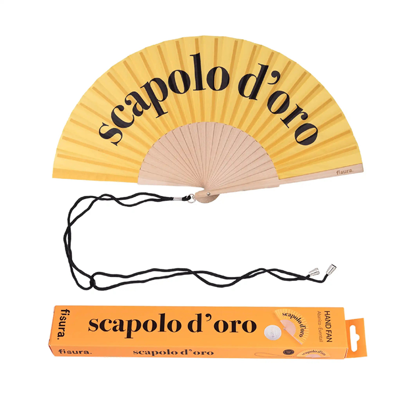 THE FISURA '-GOLDEN BACHELOR'- FAN IS AN ELEGANT AND DISTINCTIVE YELLOW ACCESSORY, DESIGNED BY THIRD ROUND, SL. MADE FROM HIGH QUALITY MATERIALS, IT OFFERS AN IDEAL COMBINATION OF FUNCTIONALITY AND STYLE. THE FAN IS PERFECT FOR ADDING A TOUCH OF COLOUR AND SOPHISTICATION TO ANY OUTFIT, MAKING IT AN ESSENTIAL ACCESSORY FOR STAYING COOL ON HOT DAYS.