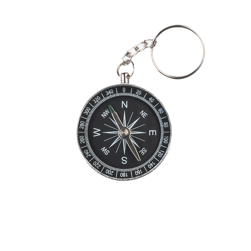 Aluminum keychain compass with transparent dial. Can be easily attached to your backpack or bag.