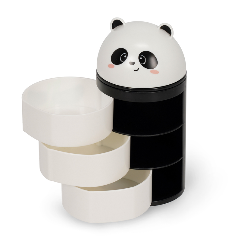 The Desk Organizer Aww-Rganiser Panda by Legami is a functional and cute desk accessory with a panda-shaped design. Made from quality materials, it offers various compartments for storing pens, pencils, paperclips, and other small office items, helping you keep your workspace tidy and organized.