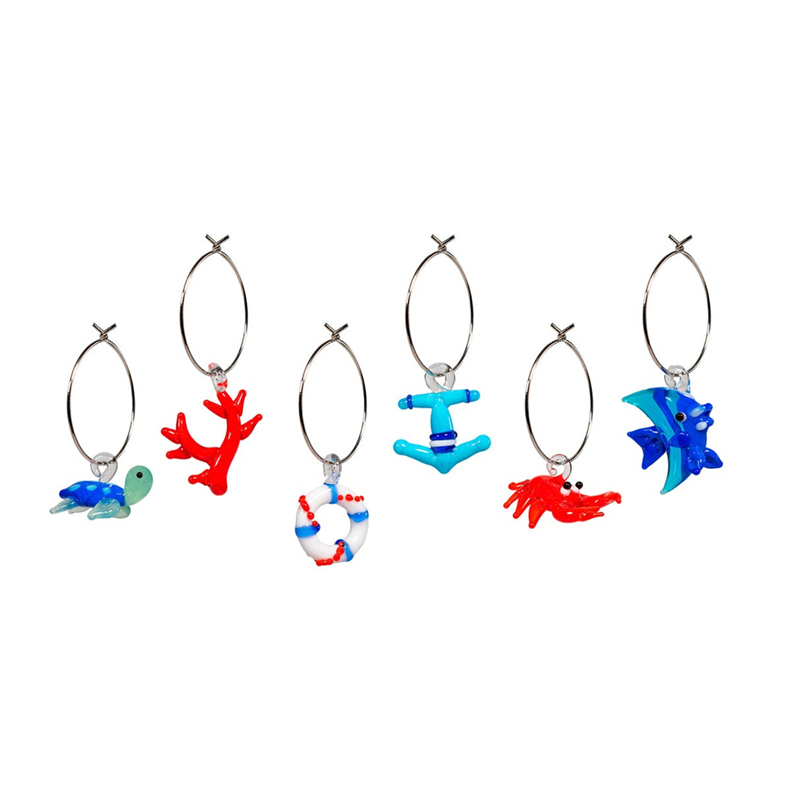 Set 6 Anellini Segnaposto Vetro Colorato Animali Marini | Mercati Srl