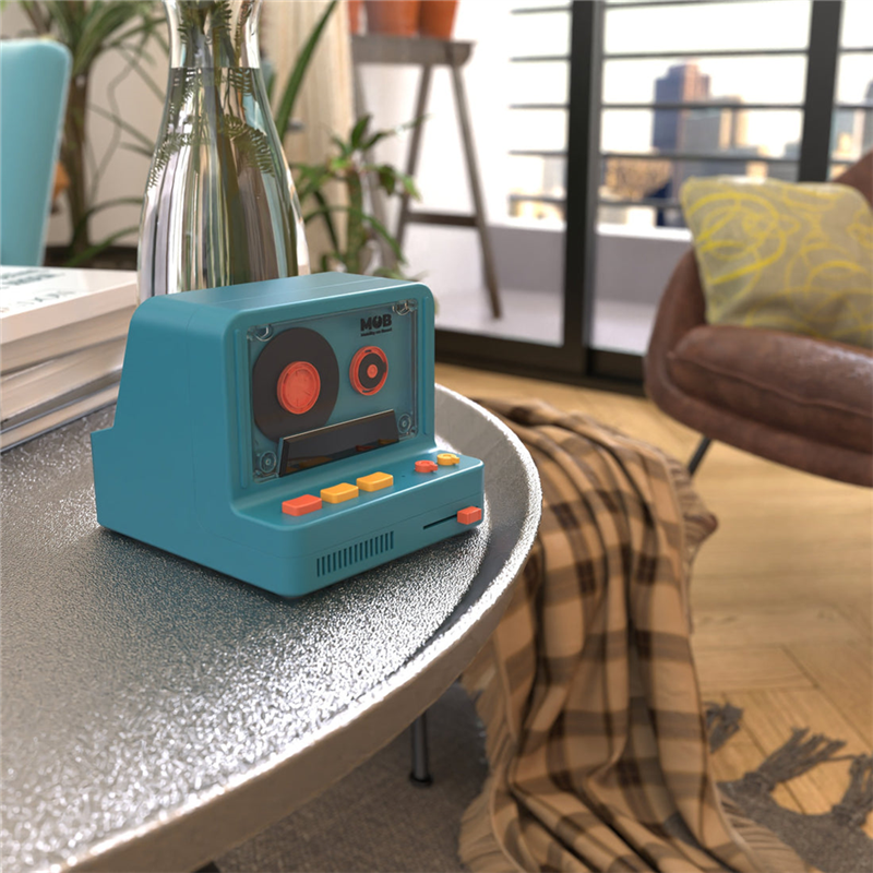 The Retro Tape Vintage Speaker RS-80 Blue by Mob is an audio device with a nostalgic design that evokes the aesthetics of the 1980s. This portable speaker combines a retro look with modern features, offering Bluetooth connectivity for wireless music playback. It is equipped with intuitive controls and a rechargeable battery that ensures hours of autonomy. The blue casing adds a touch of vibrant color, making it a stylish and functional accessory for vintage enthusiasts.