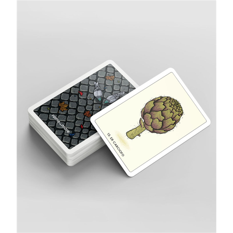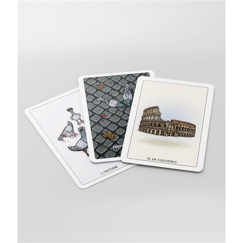 a limited edition produced by dal negro, of forty works illustrated by valerio paolucci, with the creative direction of carolina venosi, to represent a cross-section of today'-s rome with the chorus typical of a deck of playing cards.