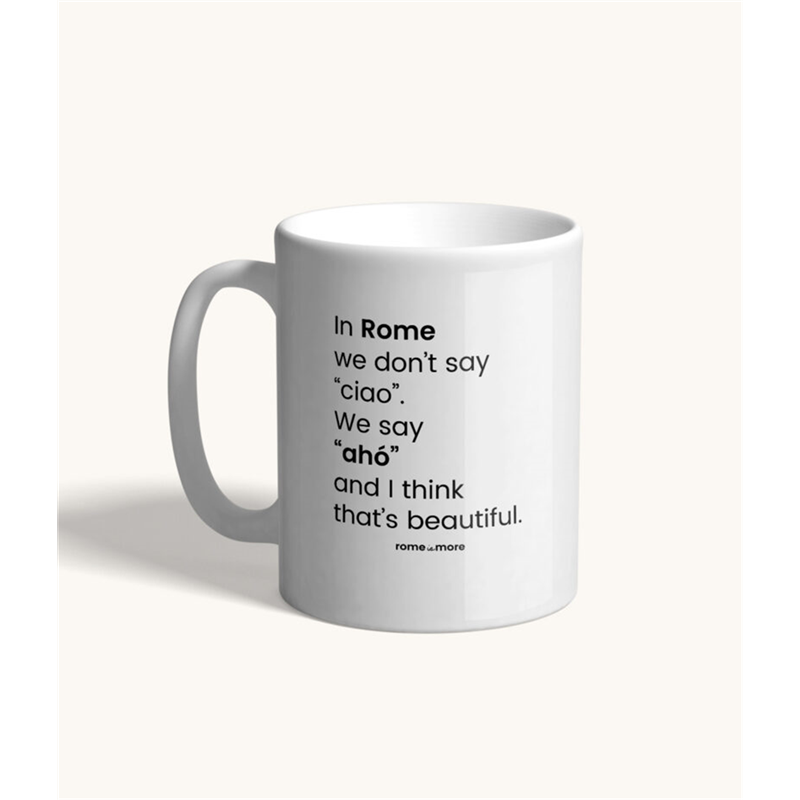 THE "-ROME IS MORE WE SAY AHO"- CERAMIC MUG BY ITALIAN SAYS SRLS IS A HIGH QUALITY PRODUCT MADE OF DURABLE CERAMIC. THE UNIQUE AND ORIGINAL DESIGN CELEBRATES THE AUTHENTICITY AND LIVELY SPIRIT OF ROME, WITH THE ICONIC PHRASE "-WE SAY AHO"- CAPTURING THE ESSENCE OF ROMAN LINGO. PERFECT FOR LOVERS OF ITALIAN CULTURE, THIS MUG IS IDEAL FOR ENJOYING COFFEE, TEA OR OTHER HOT DRINKS, ADDING A TOUCH OF CHARACTER AND STYLE TO YOUR DAILY ROUTINE. A PERFECT GIFT FOR THOSE WHO LOVE ROME AND ITS UNMISTAKABLE CHARM.