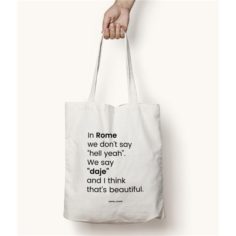 THE "-ROME IS MORE WE SAY DAJE"- SHOPPER TOTE BAG BY ITALIAN SAYS SRLS IS A PRACTICAL AND STYLISH ACCESSORY, PERFECT FOR THOSE WHO LOVE ROMAN CULTURE. MADE OF RESISTANT MATERIALS, THIS BAG IS ROOMY AND IDEAL FOR SHOPPING OR DAILY USE. THE DESIGN FEATURES THE ICONIC "-DAJE"- SLOGAN, A TYPICAL ROMAN EXPRESSION THAT EMBODY THE ENERGY AND SPIRIT OF THE ETERNAL CITY. AVAILABLE IN DIFFERENT COLOR VARIATIONS, IT'-S A GREAT CHOICE FOR THOSE WHO WANT TO CARRY A PIECE OF ROME WITH THEM WHEREVER THEY GO.
