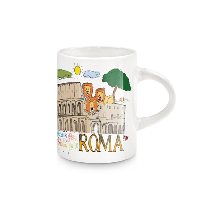 Ceramic Coffee Cup 2.5oz Rome Rome-Lions On Colosseum | Vertecchi Selection | Selezione Vertecchi