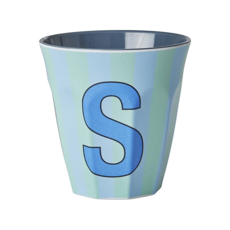 Melamine Mug 9cm Letter Stripes S-Blue | | Rice