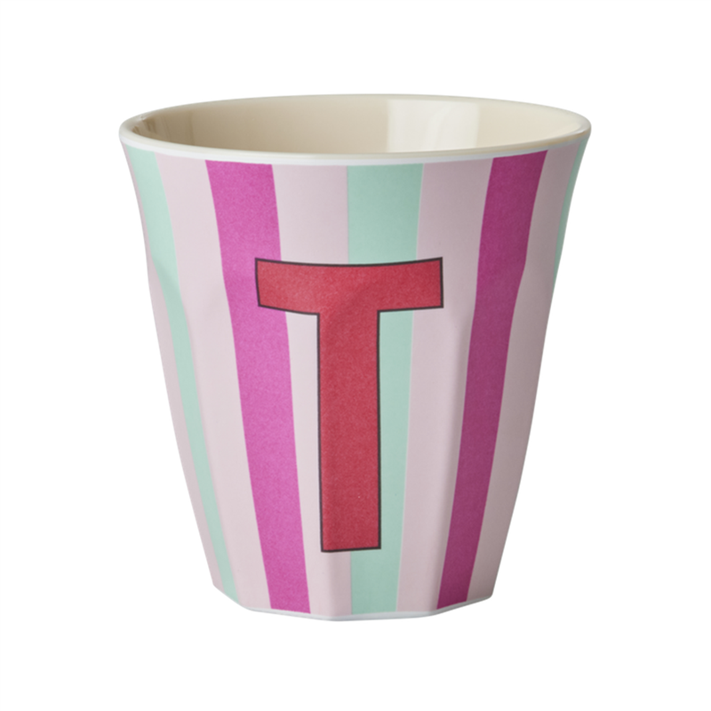 Melamine Cup 9cm Letter Stripes T-Pink | | Rice