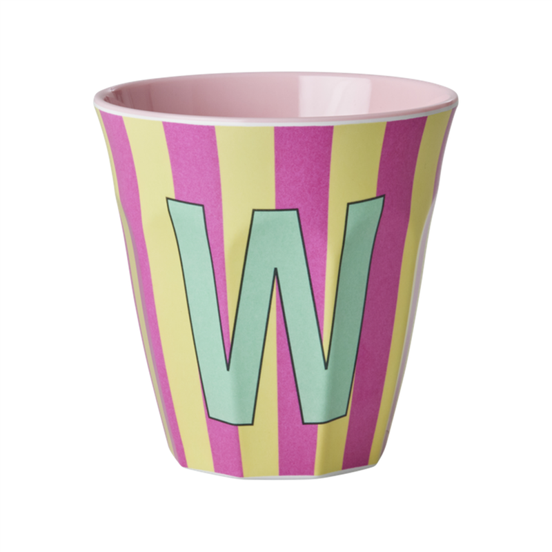 Melamine Cup 9cm Letter Stripes X-Light Pink