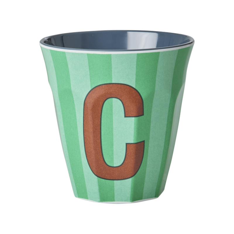 Melamine Cup 9cm Letter Stripes G - Soft Blue