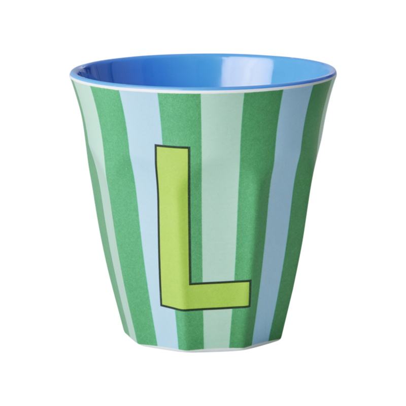 Melamine Cup 9cm Letter Stripes L-Blue | | Rice