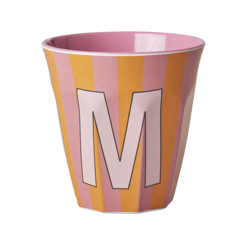 Melamine Cup 9cm Letter Stripes M-Pink | | Rice
