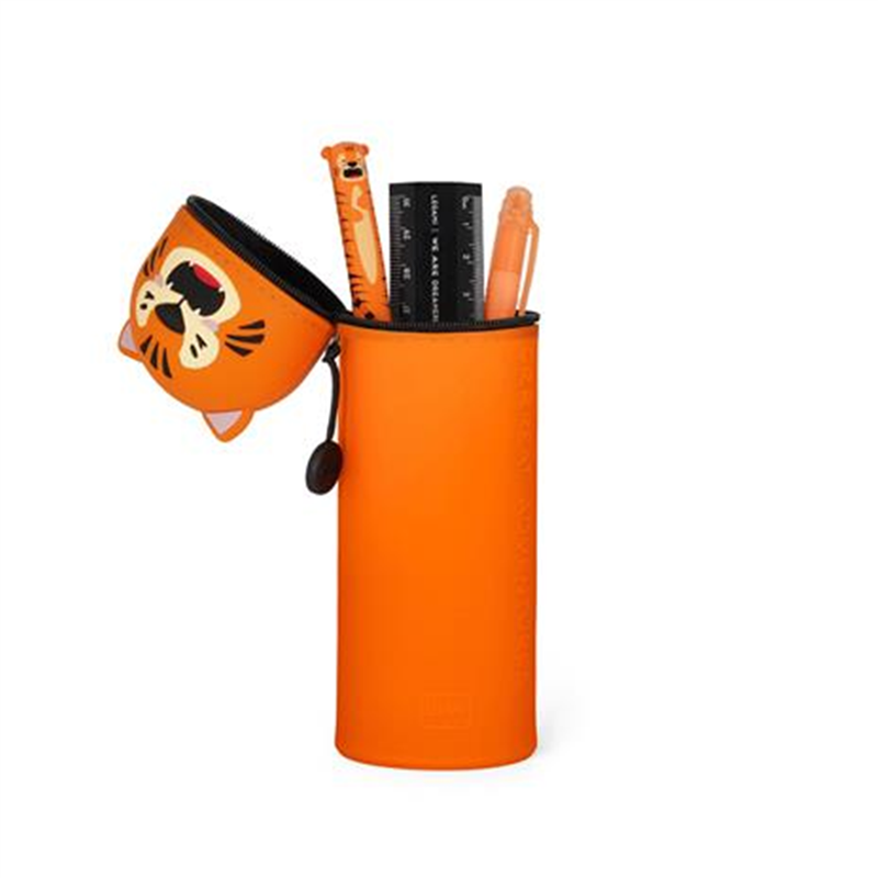 all superheroes have a double identity: kawaii, the 2 in 1 tiger-themed soft silicone pencil case from Bonds, can transform into a table pen holder by simply turning on itself!