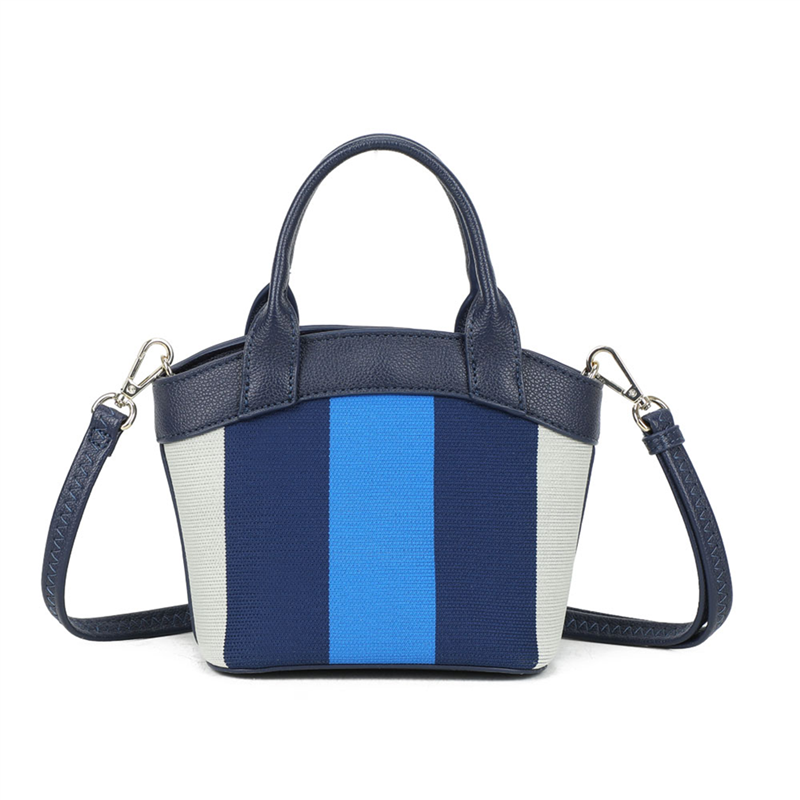 Elegant yet understated, this handbag made of fabric and polyurethane features a multi-colored striped pattern. Equipped with a removable and adjustable shoulder strap, it'-s the perfect accessory for a stroll or an aperitif. Ideal for always carrying your small personal accessories: wallet, smartphone, house keys, makeup, and all your belongings. Features: Magnetic button closure. Portability: Crossbody or hand carry. Removable and adjustable shoulder strap. Handle height: 8cm. Shoulder strap length: 90-130cm. Dimensions: 20W x 15H x 12D cm- Weight: 275g. Packaging: Dust bag. Shopper: Large