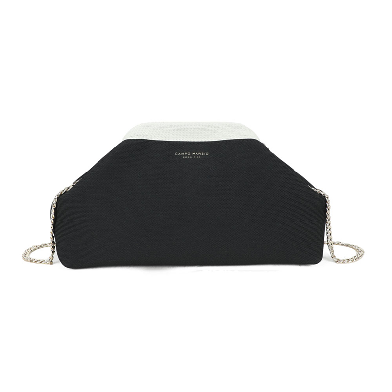 Clutch bag with click-clack closure and two-tone pattern, perfect for keeping your wallet, makeup, keys, and many other small personal items close at hand. Ideal for safely storing your precious accessories without sacrificing a fashionable and elegant design, easy to match with any outfit. Thanks to the removable shoulder strap, it'-s perfect for an aperitif, dinner, or a stroll. Features: Click-clack closure. Portability: Over the shoulder or by hand. Removable and adjustable shoulder strap. Shoulder strap length: 120 cm. Dimensions: 31 x 18 x 11 cm- Weight: 220 g. Packaging: Dust bag. Shopper: Large