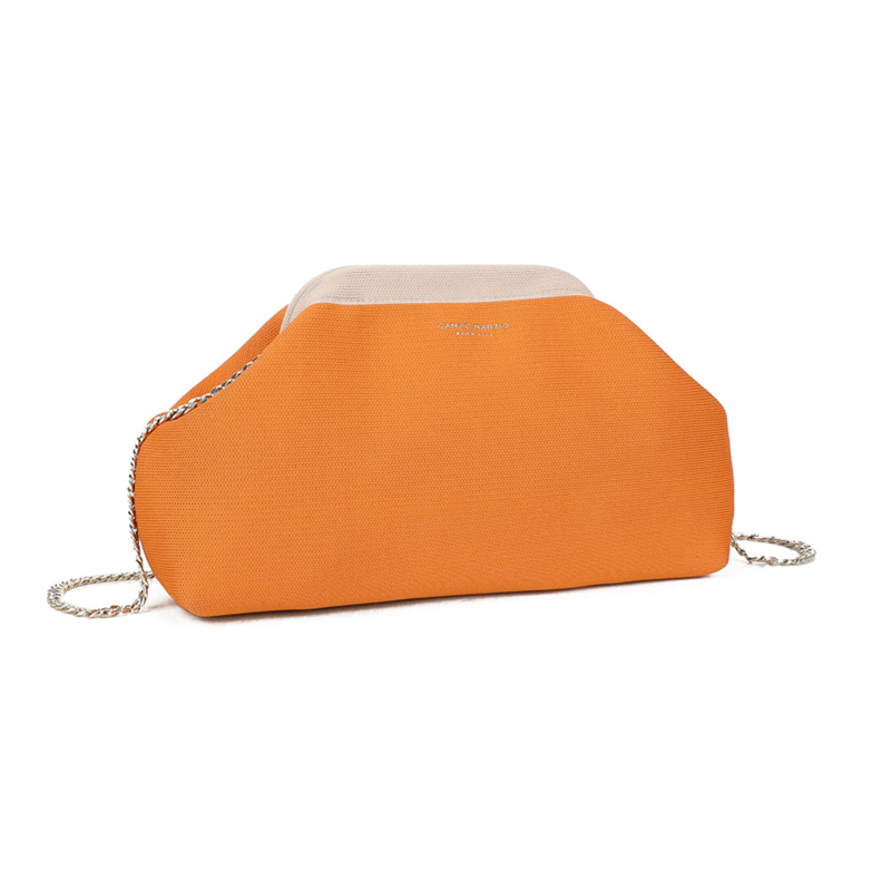 Clutch bag with click-clack closure and two-tone pattern, perfect for keeping your wallet, makeup, keys, and many other small personal items close at hand. Ideal for safely storing your precious accessories without sacrificing a fashionable and elegant design, easy to match with any outfit. Thanks to the removable shoulder strap, it'-s perfect for an aperitif, dinner, or a stroll. Features: Click-clack closure. Portability: Crossbody or hand carry. Removable and adjustable shoulder strap. Shoulder strap length: 120 cm. Dimensions: 31 x 18 x 11 cm- Weight: 220 g. Packaging: Dust bag. Shopper: Large