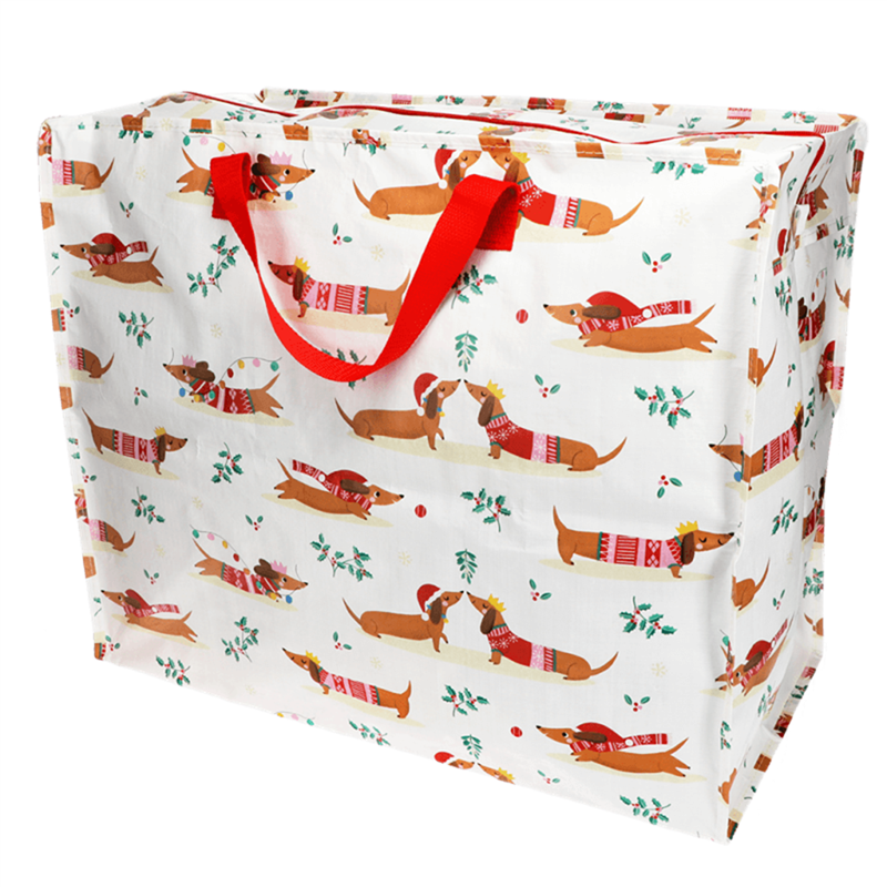 Festive Sausage Dog Nylon Plc Jumbo Shopper Bag 28x55x48cm | Rex London