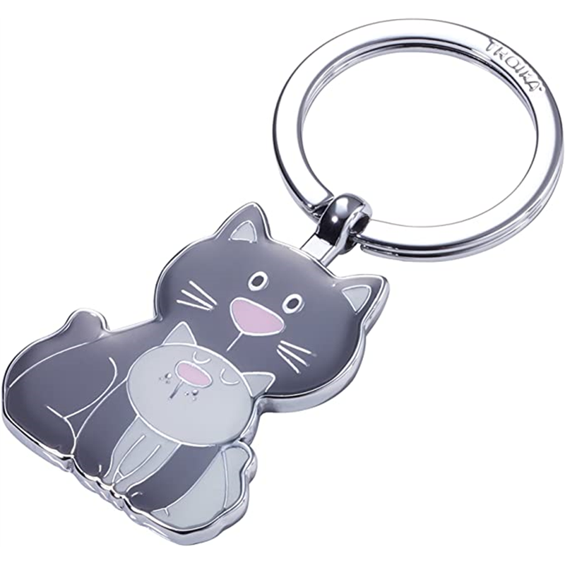 Troika Cat & Kitty themed metal keychain, featuring an elegant and robust design. Made with high-quality materials, it offers a touch of style and functionality. Perfect for cat lovers, the keychain has a glossy finish and precise details that highlight the figures of the cat and kitten.