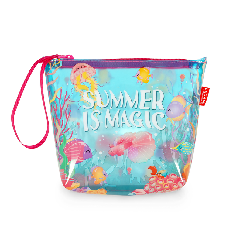 The "-Summer is Magic"- beach clutch from Legami is a practical and stylish accessory, ideal for storing your personal items during days at the beach. Made from quality materials, it features a vibrant, summery design, perfect for those who love to stand out with a pop of color. The zip closure ensures your belongings are kept safe, while its compact size makes it easy to carry. Perfect for carrying everything you need for a day at the beach, with a touch of summer magic.