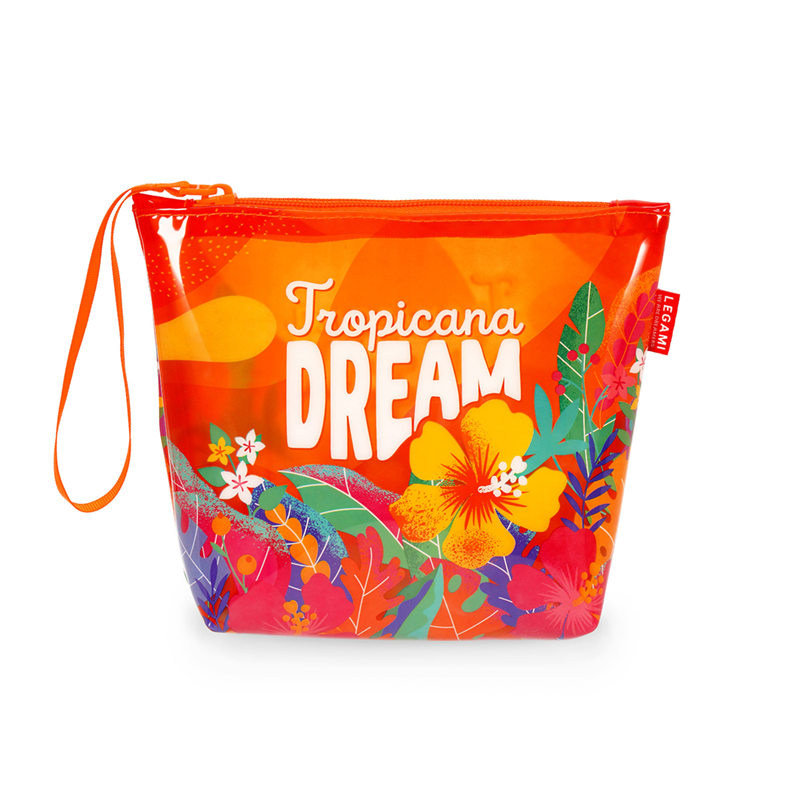 The Tropicana Dream beach clutch from Legami is a vibrant and colorful accessory, perfect for holding essentials during days at the beach or pool. Made from water-resistant materials, it features a tropical print that evokes an exotic and relaxing atmosphere. The zip closure ensures security and practicality, while its compact size makes it easy to carry in larger bags. Ideal for those who love to add a touch of style and functionality to their summer look.