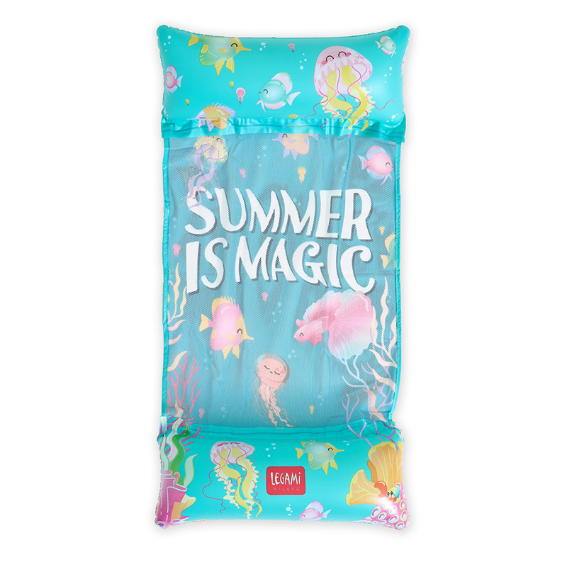 The "-Summer is Magic"- inflatable hammock from Legami is perfect for enjoying relaxing moments wherever you are. Made from durable, high-quality materials, it inflates easily without the need for a pump and deflates in seconds for convenient portability. Ideal for beaches, parks, or gardens, it offers exceptional comfort thanks to its ergonomic design. Its vibrant color and summery motif add a touch of joy to your days outdoors. Complete with a handy carrying bag, it'-s the must-have accessory for every summer lover.