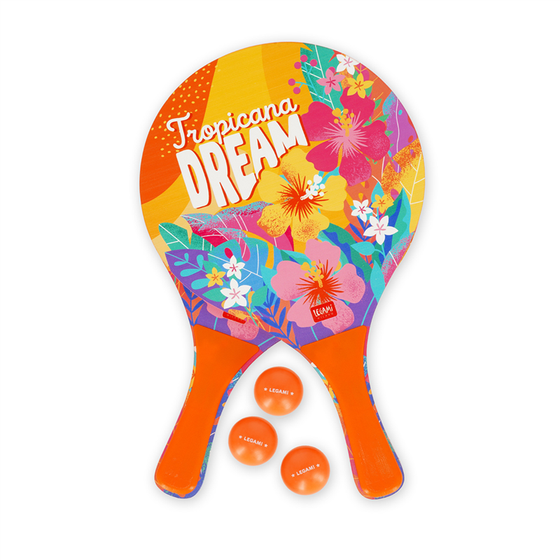 The Legami Tropicana Dream beach rackets are perfect for having fun at the beach in style. Made from high-quality materials, these rackets feature a colorful, tropical design, ideal for those who love the sun and relaxation. Lightweight and easy to handle, they offer excellent grip and guarantee hours of play on the beach. A matching ball is included to complete the set.