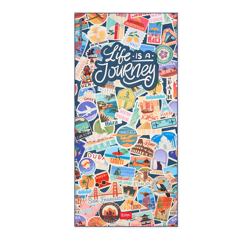 The Travel Stickers beach towel from Legami is a vibrant and colorful accessory, perfect for lovers of travel and adventure. Made of soft, high-quality fabric, it features an attractive design with travel stickers that evoke exotic destinations and unforgettable moments. Ideal for the beach, pool, or picnics, this beach towel combines functionality and style, ensuring comfort and a touch of originality to your summer days.