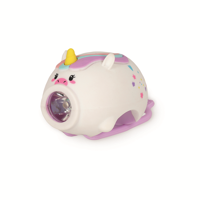 Rechargeable unicorn-shaped front bike light by Legami, ideal for ensuring visibility and safety during evening rides. Equipped with a USB rechargeable battery, it offers various lighting modes to suit every need. The unique and colorful design adds a touch of fantasy to your bicycle. Easy to install and weather-resistant, it's perfect for cyclists of all ages.