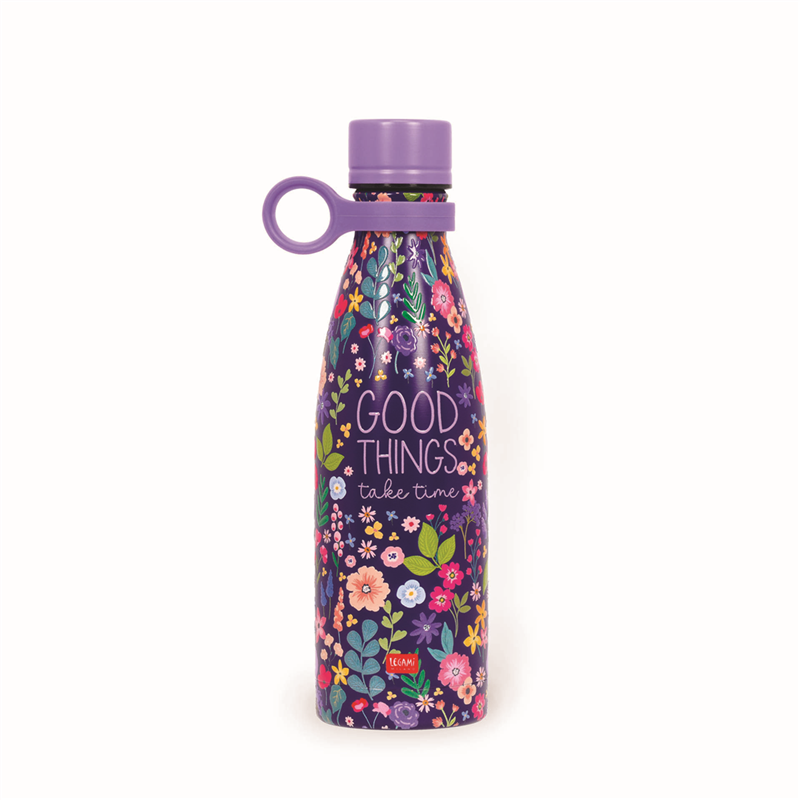The 500 ml hot &- cold thermal bottle from Legami is designed to keep drinks hot for up to 12 hours and cold for up to 24 hours. Made of stainless steel, it is durable and BPA-free, ensuring safety and eco-sustainability. The compact and lightweight design makes it ideal for travel, while the screw cap ensures an airtight seal, preventing leaks. Available in a variety of colors and patterns, it combines functionality and aesthetics, perfect for every daily adventure.