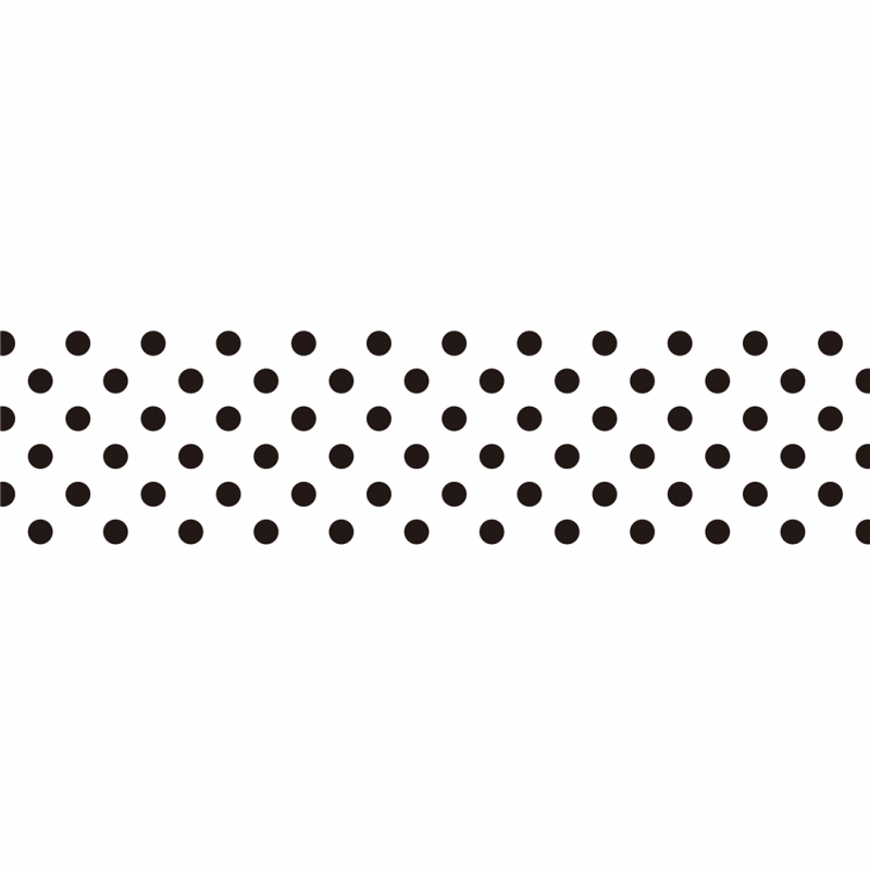 Masking Tape Mast� Black/Polka Dots, 15mm wide by 7 meters long. Made with high-quality materials, it offers secure adhesion and is easy to remove without leaving residue. The design features a black background with polka dot patterns, ideal for decorations, art projects, and packaging work. Versatile and durable, suitable for use on paper, plastic, metal, and other smooth surfaces.