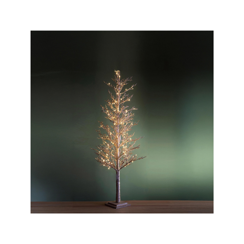 120cm Glitter Larch Tree Decorated in a Sparkly Champagne Shade. Featuring 78 LED Lights for a Warm, Cosy Illumination. Perfect for Adding a Touch of Elegance and Sparkle to Your Holiday Decor.