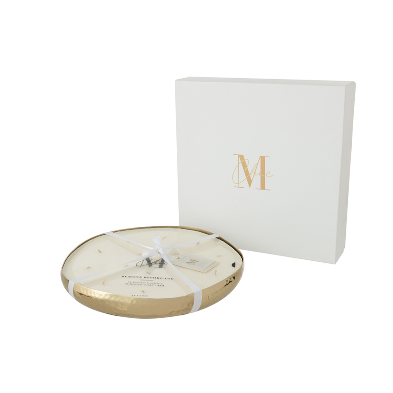 THE 35.5 CM DIAMETER M-CHIC METAL SCENTED CANDLE EXPRESSES A REFINED OUD AND AMBER FRAGRANCE, IDEAL FOR CREATING A WARM AND WELCOMING ATMOSPHERE IN ANY SPACE. ITS ELEGANT AND MODERN DESIGN INTEGRATES PERFECTLY IN DIFFERENT DECORATIONS, OFFERING NOT ONLY A UNIQUE OLFACTORY EXPERIENCE BUT ALSO A SOPHISTICATED DECORATIVE ELEMENT.