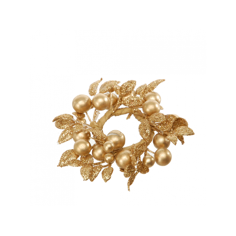 Candle Ring D07cm Gold Glitter Berries And Leaves | | Bianchi Dino