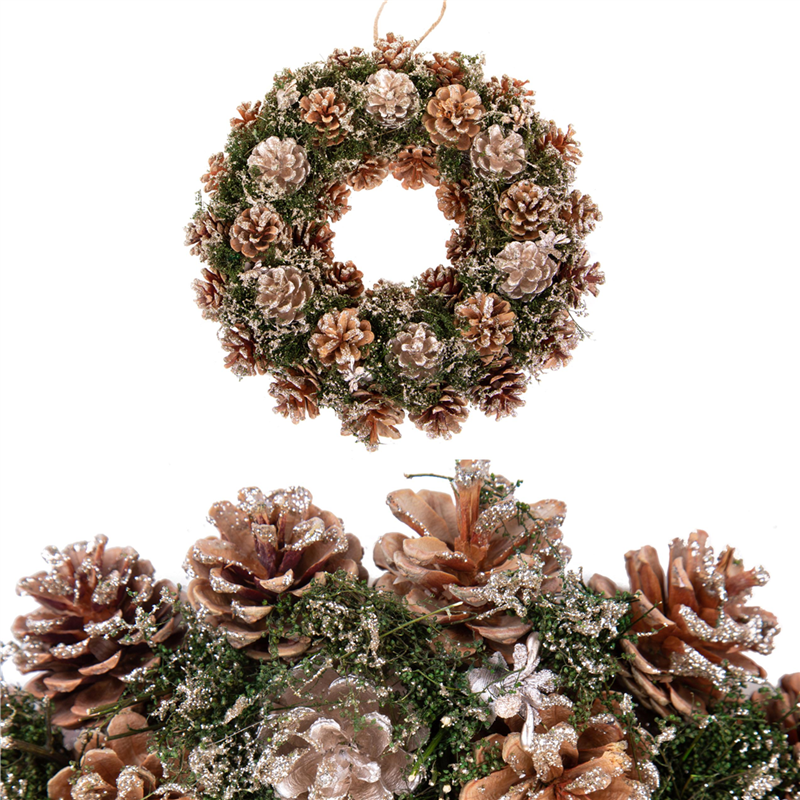 Green Pine Wreath 30cm With Gold Glitter Cones | | Bianchi Dino