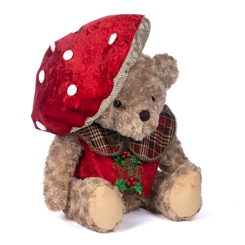 The 50 cm tall Woodland Bear Plush with a Mushroom Hat is a delightful, soft companion perfect for decorating and bringing a touch of autumn magic to your home. This plush toy features a unique design that combines natural and fantastical elements, such as its mushroom-shaped hat, making it a charming and original piece for any room. With its sweet expression and meticulous detailing, it is ideal for collectors or anyone who wants to add a touch of fairy tale to their decor.