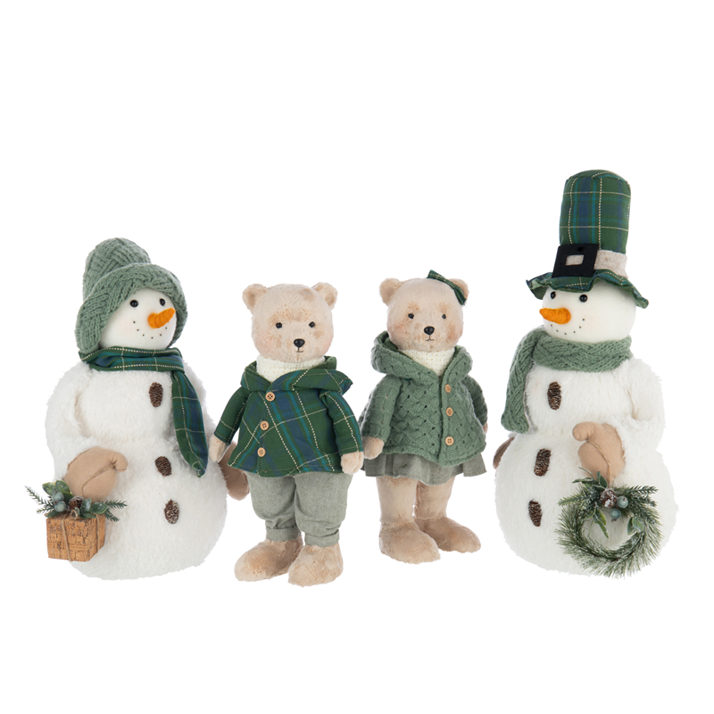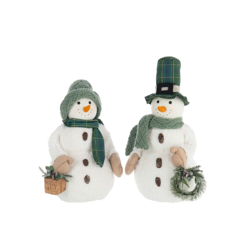 Pupazzo Di Neve Con Sciarpa E Decori H53cm Bianco E Verde | J-Line