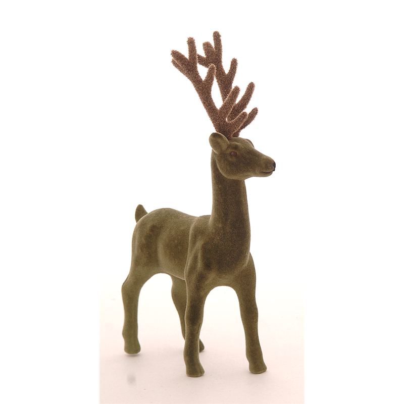 DECORATIVE REINDEER IN A STANDING POSITION, MADE WITH A GREEN FLOCKED COATING, HEIGHT OF 45 CM.